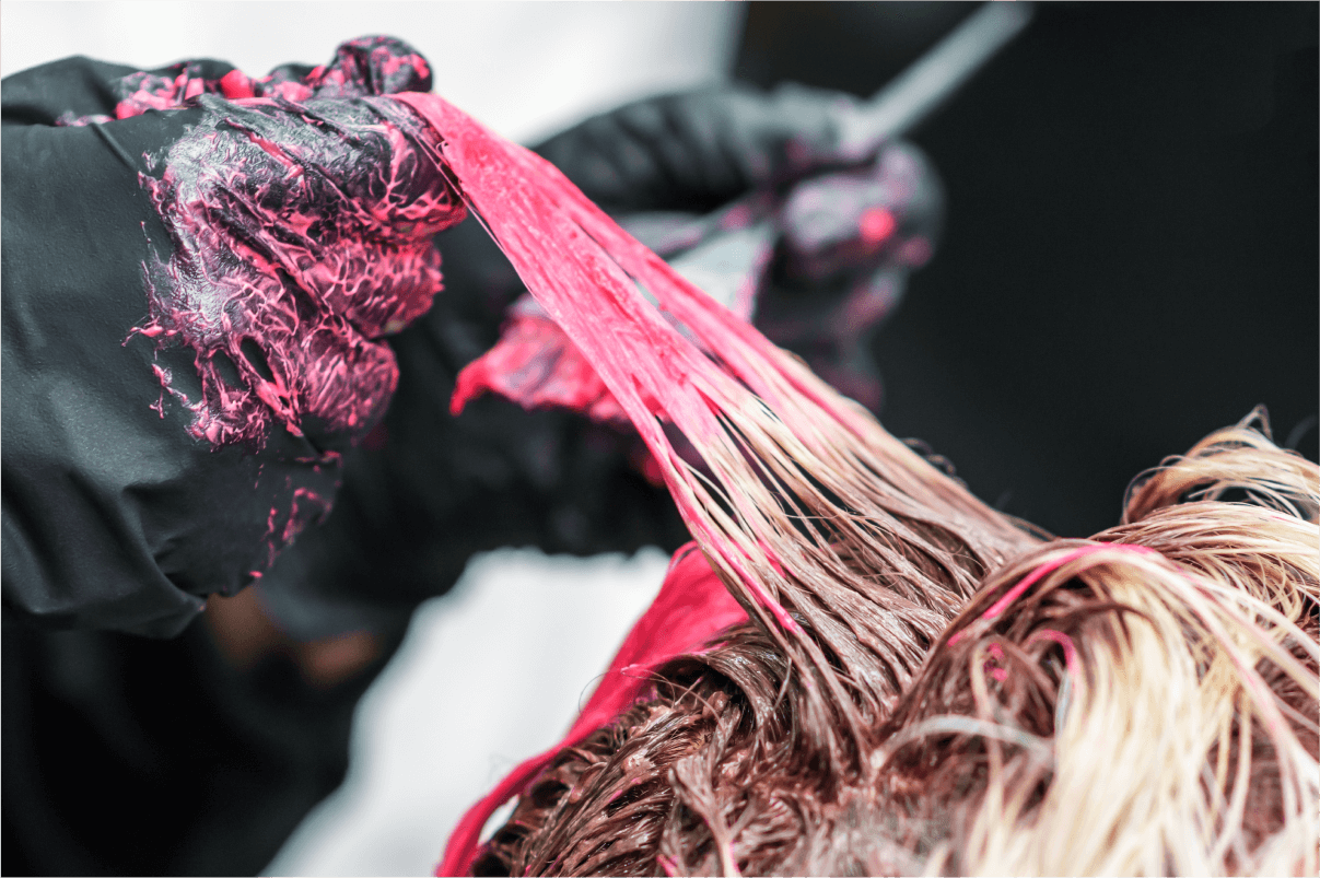 Section your hair as desired and apply Color Clique dye generously, ensuring even coverage.